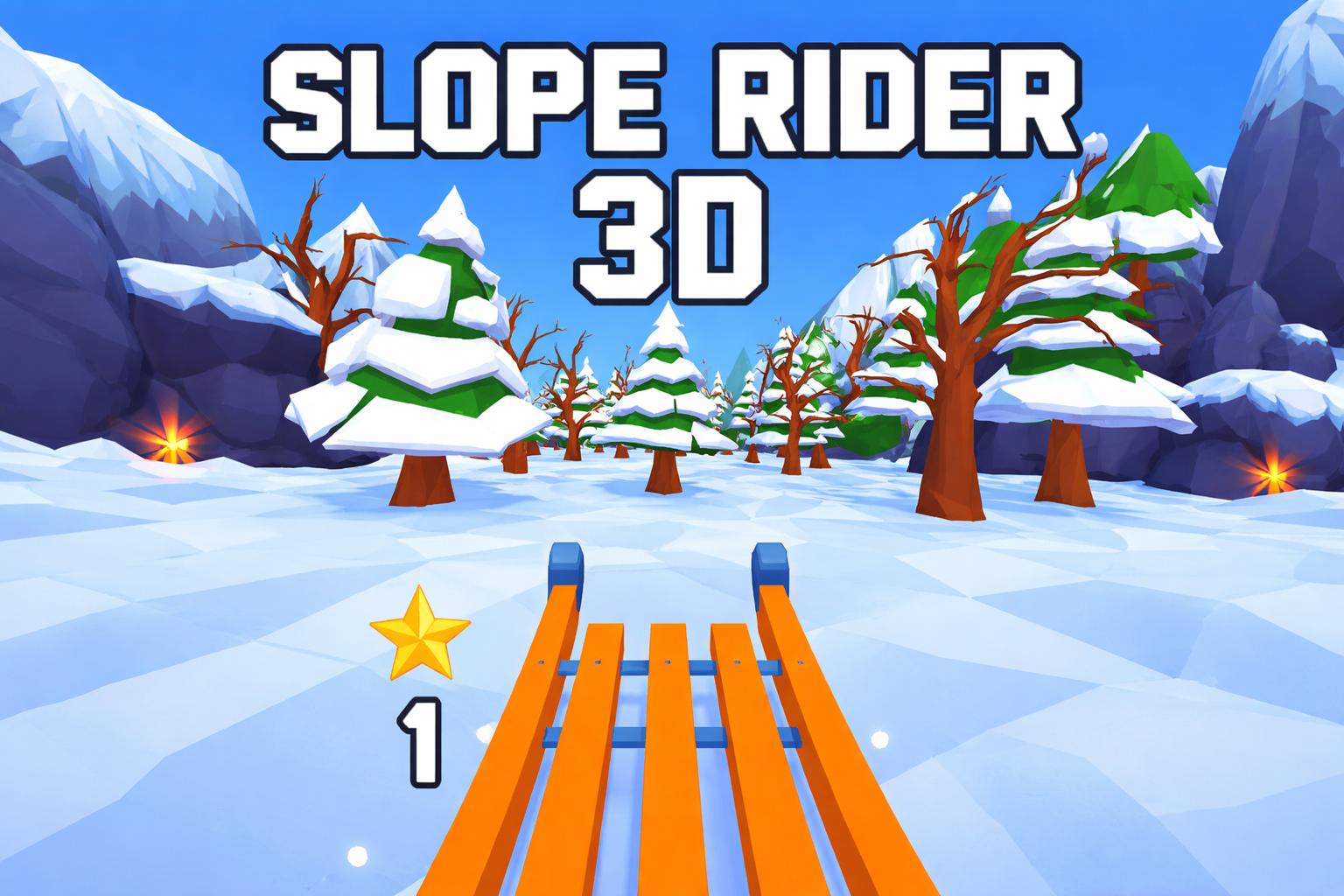 In Slope Rider 3D, you control a sled or snow rider hurtling down a dynamically generated slope. The goal is simple — survive as long as possible while dodging obstacles like trees, rocks, and snowballs that appear with increasing frequency and difficulty. Precision steering and well-timed jumps keep your run alive, as one collision instantly ends the ride.